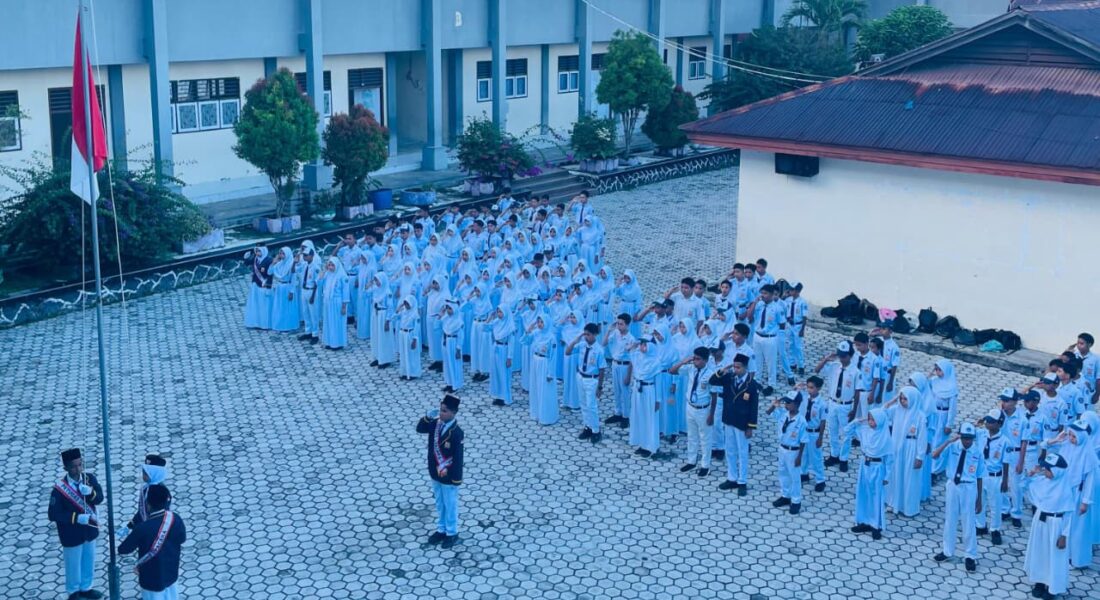 Mengawali hari pertama masuk sekolah, seluruh warga sekolah mengikuti upacara bendera yang rutin dilaksanakan setiap hari Senin. Upacara ini menjadi momen penting untuk menumbuhkan kembali semangat belajar, kedisiplinan, serta rasa cinta tanah air di kalangan siswa setelah menikmati masa liburan.